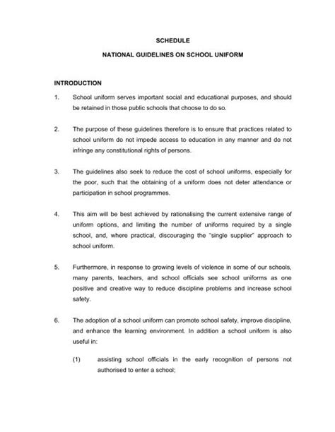 Title: - schedule national guidelines on school uniform introduction