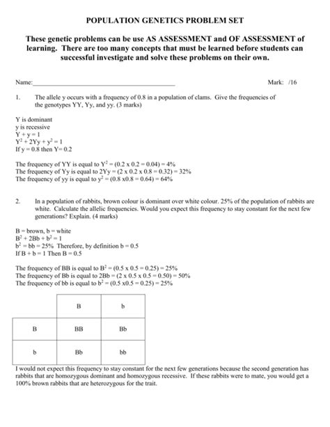 Title: - study guide for population genetics problems answer key