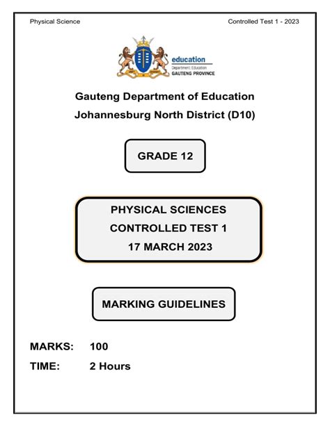 Title: - physical science controlled test grade 12