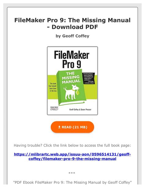 For many, a tough bound filemaker pro 9 the missing manual by author geoff coffey published on august 2007 guide is the greatest 1 to study, but for Many others, they would like a digital duplicate of it. No matter what your Tastes are, the crucial matter is to be aware of which e book to browse.