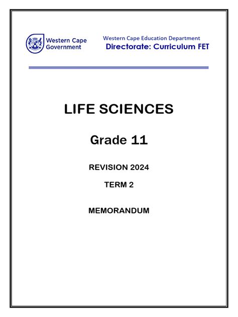 Title: - grade11 life science control test memo