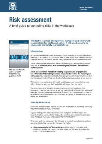 Title: - risk assessment a brief guide to controlling risks in the workplace